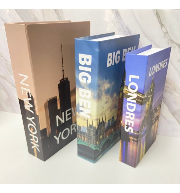 Caixa Livro Decorativa com 3 Peças New York Entardecer