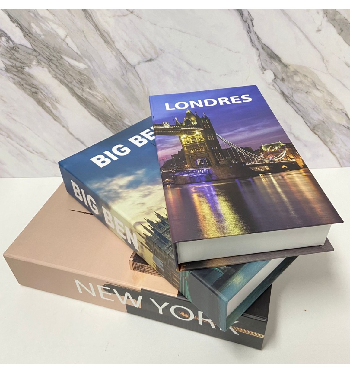 CAIXA LIVRO DECORATIVA COM 3 PEÇAS NEW YORK ENTARDECER