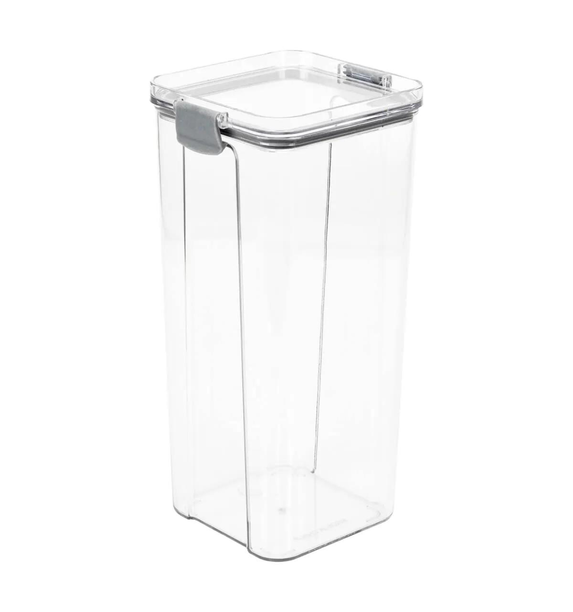 Pote Hermético Quadrado Transparente Com Trava - Cinza 2000ml