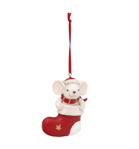 Enfeite para Pendurar Rato Dentro da Meia Decorativo de Resina