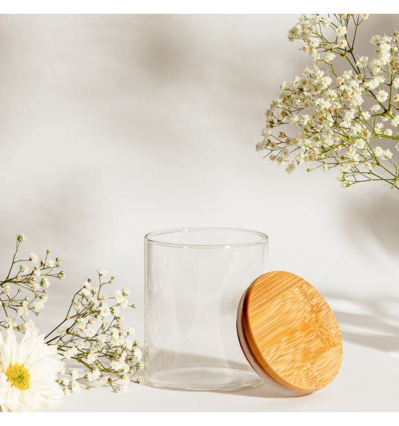 Pote Hermético Redondo de Vidro com Tampa em Bambu 550ml