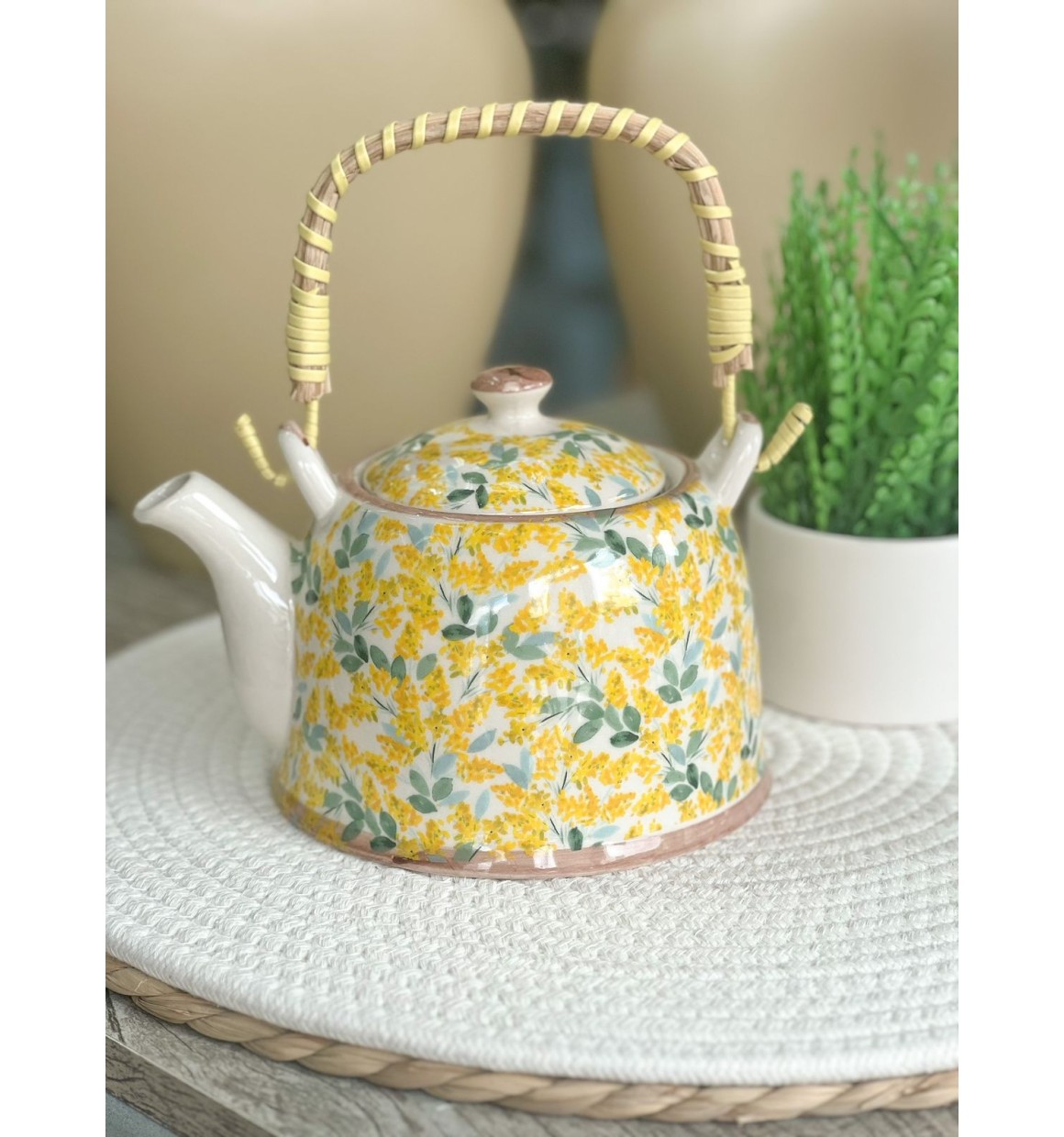 Bule Decorativo de Porcelana Floral - Amarelo e Verde