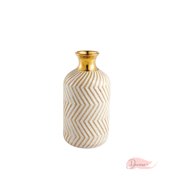 Vaso de Cerâmica Chevron Creme e Dourado Peq 14cm