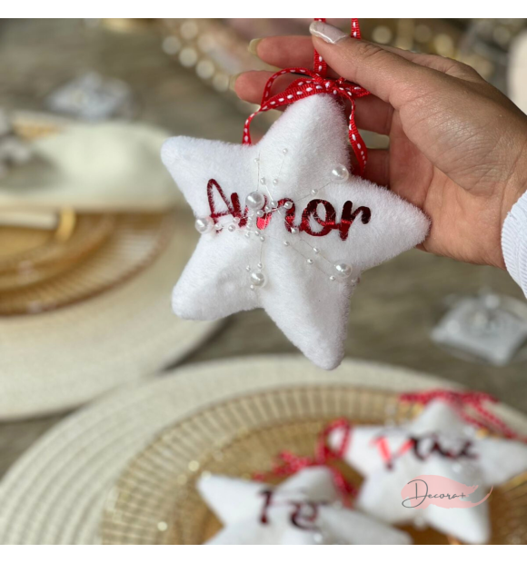 Enfeite de Natal Estrela Branca "Amor" - 12cm