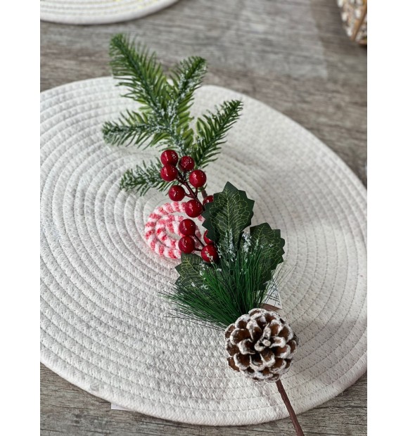 Deixe seu lar mais acolhedor neste Natal com o nosso Enfeite de Galho. Os pirulitos coloridos e as pinhas trazem uma sensação de nostalgia e calor, adicionando um toque encantador à sua decoração.