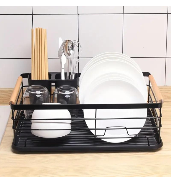Escorredor de Louças com Porta Talheres e Bandeja - Preto