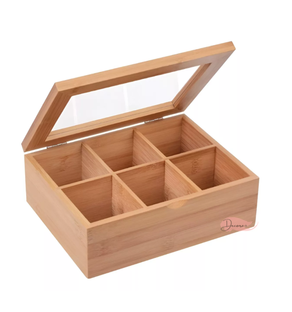 Apresentamos a nossa incrível Caixa para Chá de Bambu com 6 Divisórias com tampa de Acrilico.