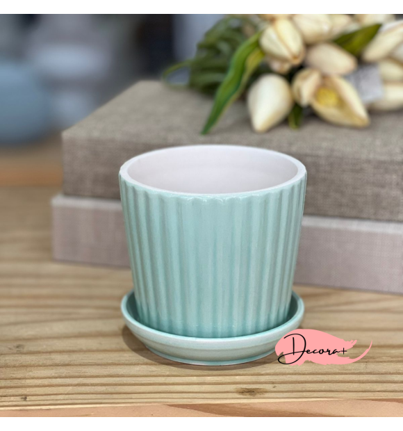 Vaso de Cerâmica com Prato Verde - 10cm X 10cm