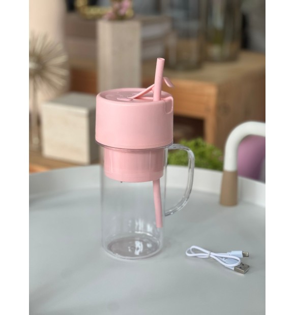 Caneca Mixer de Plástico c/ Cabo USB - Rosa 450ml