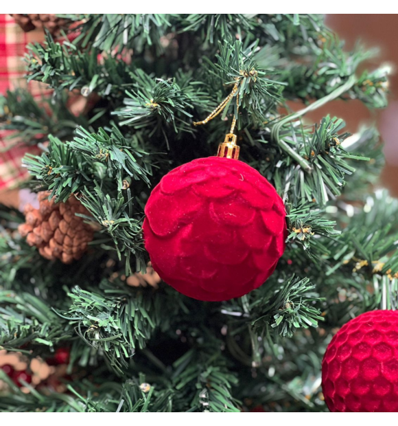 Bola de Natal Camurça Alto Relevo Vermelha Mod 4